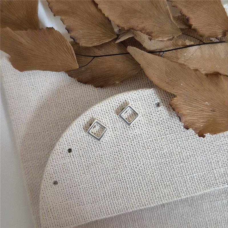 Brinco Prata 925 Legitima, quadrado pequeno vazado liso. Pino localizado na parte superior horizontal.Medidas: