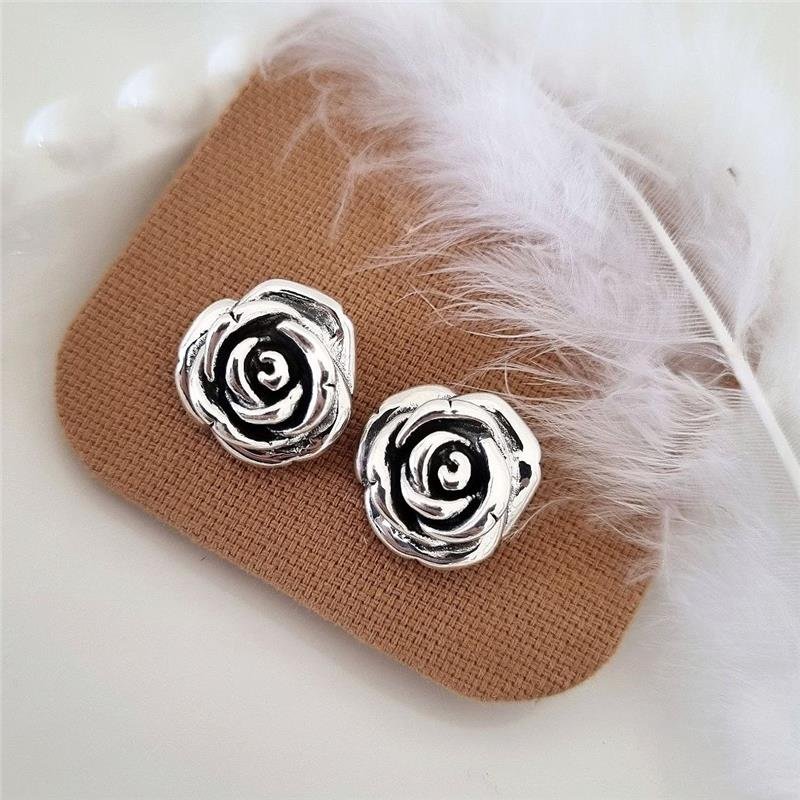 Brinco Prata 925 legítima em bali. Rosas moldadas com centro escurecido. Centro da peça oco, não deixando a peça pesada. Fecho tarracha com pino no centro da peça.Medidas