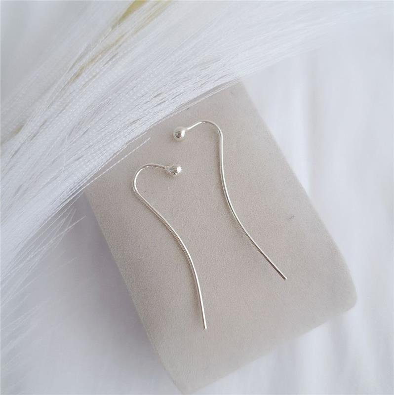 Brinco prata 925. Bolinha maciça na ponta de cima seguida de uma haste fina e curvada tipo anzol. Brinco sem tarracha.Medidas: