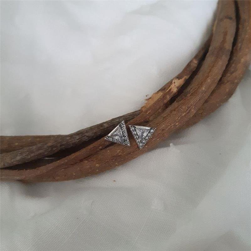 Brinco Prata 925 legítima em bali. Formato triângulo com zircônia grande no centro e cravejado com zircônias em volta. Brinco com tarracha na parte superior.Medidas: