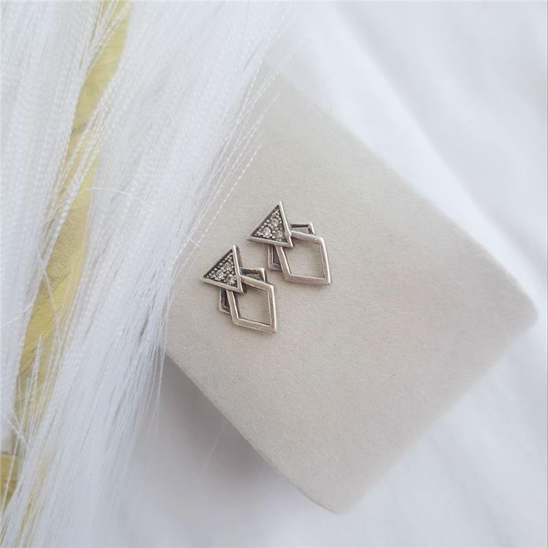 Brinco prata 925 Legítimo de bali. Triangulo Bali na base cravejado com 3 zirconias. Losango vasado liso embaixo com 1 triangulo vazado das duas laterais de cima. Brinco com tarracha.Medidas: