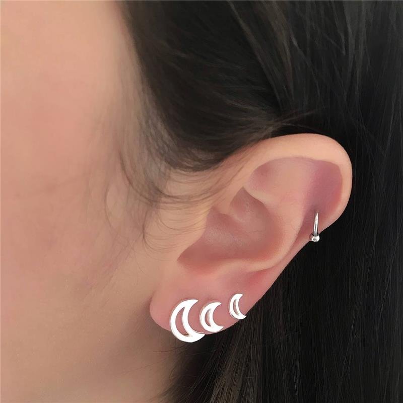 Brinco Prata 925 Legitima. Trio de brincos de lua vazada em três tamanhos- pequeno, médio e grande. Pino localizado na ponta superior da lua.Medidas: