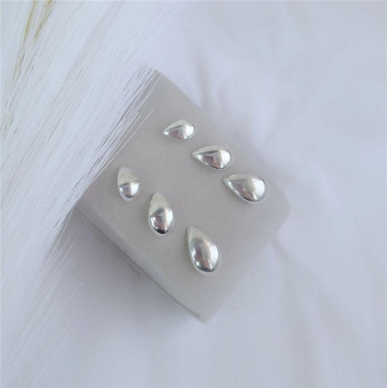 Trio de brincos em prata 925, com formato de gotas abauladas, em 3 tamanhos diferentes.Medidas:
