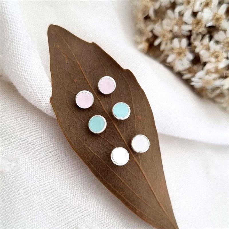 Brincos Prata 925 legítima. Trio com cravação inglesa em pedra zircônia fosca em três cores em tom pastel: rosa, azul e branco. Fecho tarracha com pino no centro da peça.Medidas