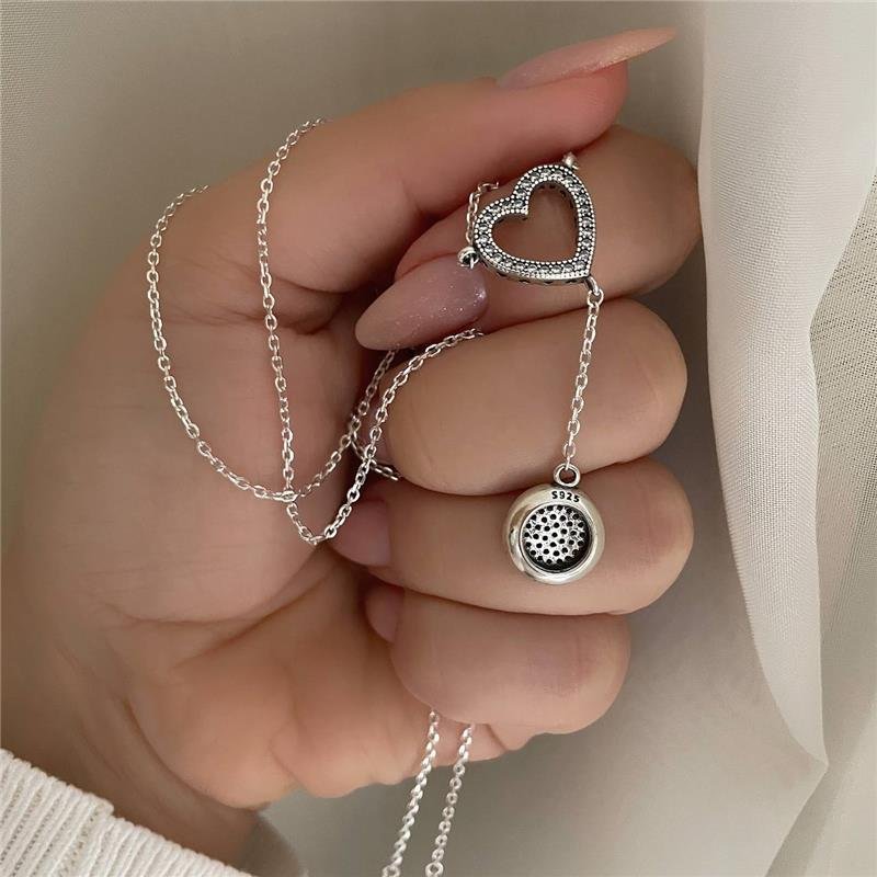 Colar elos gravatinha coração cravejado com zirconia vazado e com coraçõezinhos na lateral interligado por uma corrente de elos com pingente redondo pendurado, cravejado. Corrente elos prata branca. Pingentes coração e redondo em para bali. Fecho boia. Confeccionado em Prata 925.Medidas:
