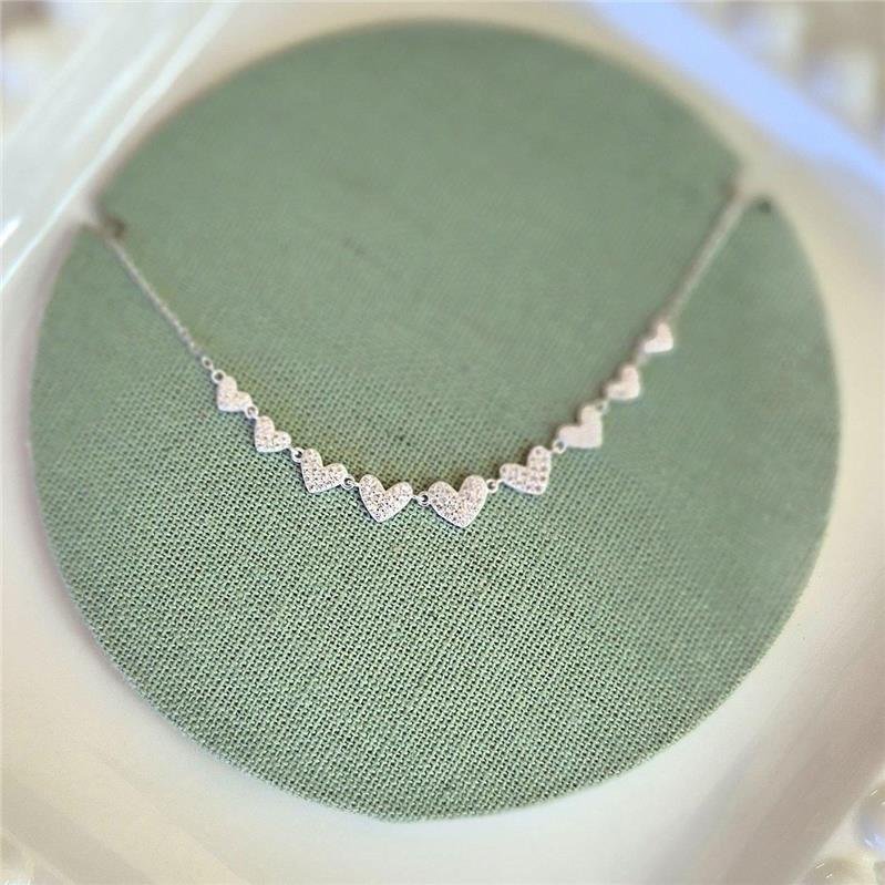COLAR PRATA 925 9 CORAÇÕES CRAVEJADOS