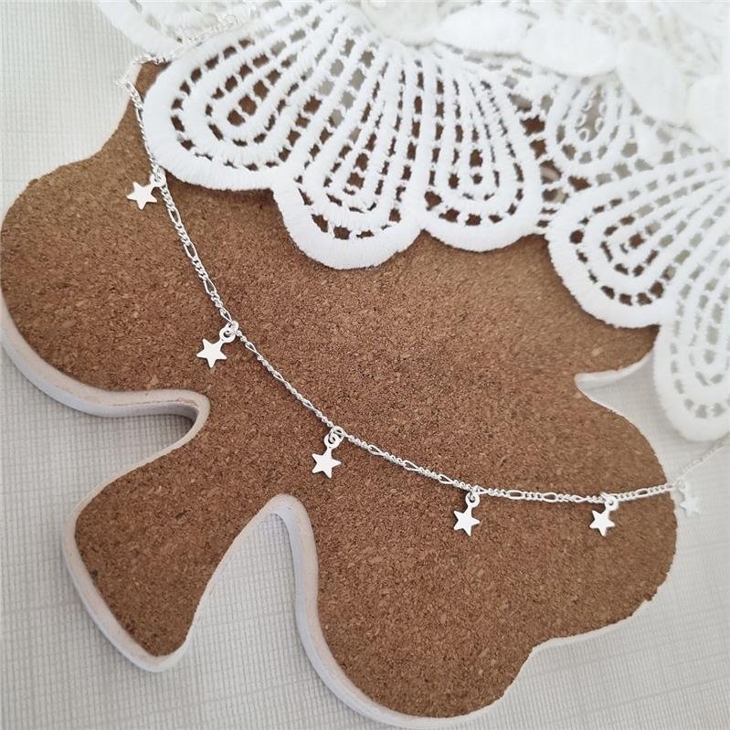 Colar Prata 925 legítima. Chocker de elos figaro de tamanho 3x1, com pingente pendurados em formato de estrela. Fecho boia com extensor.Medidas
