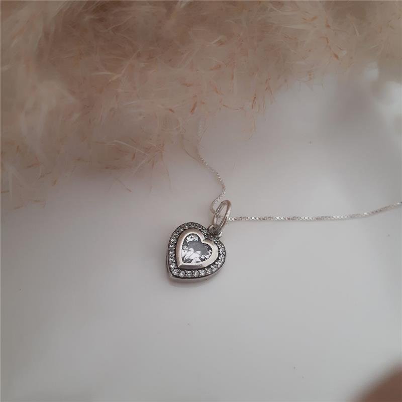 Colar Prata 925 legítima em bali. Coração liso com pedra zircônia em formato de coração no centro e cravejado com pedra zircônia nas laterais. Fecho boia.Medidas