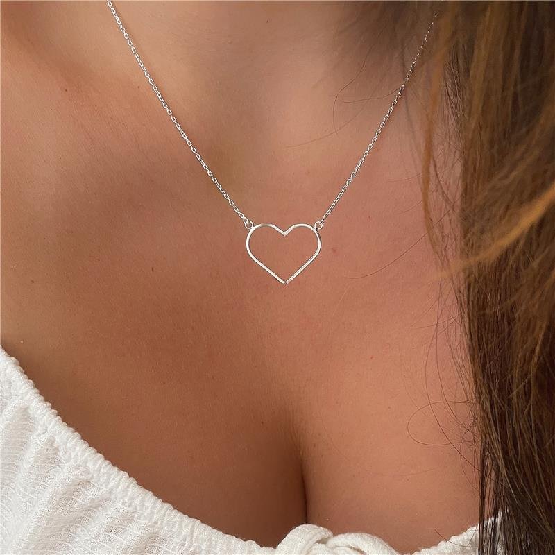 COLAR PRATA 925 CORAÇÃO VAZADO LISO 45 CM