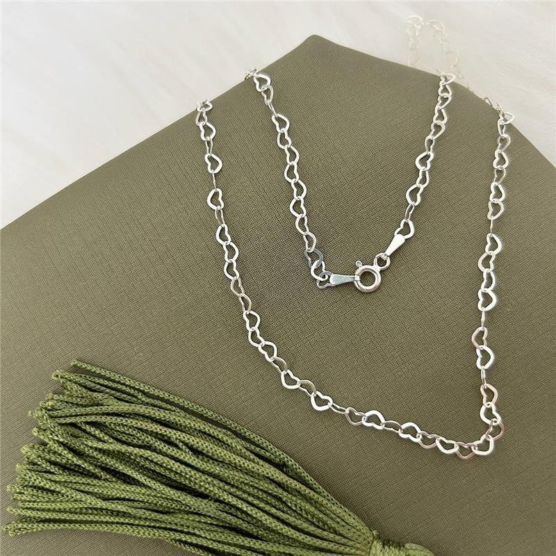Colar prata branca 925. Adorne seu pescoço com a delicadeza romântica deste colar de prata 925, ornamentado com elos de corações vazados. Cada elo é uma expressão de amor e leveza, capturando a beleza da prata esterlina em seu estado mais puro.Medidas: