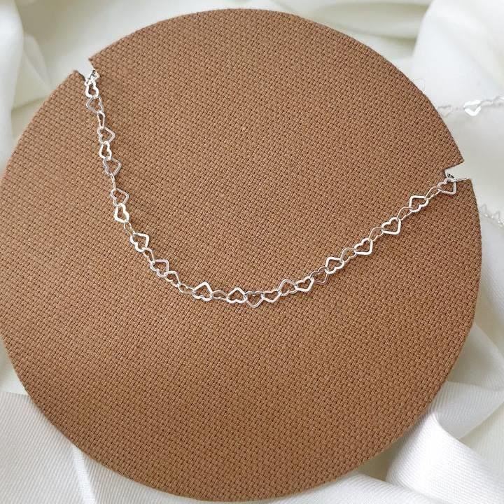 Colar Prata 925 legítima. Elos com formato coração formando corrente de 50 cm (maior corrente nas imagens). Fecho boiaMedidas