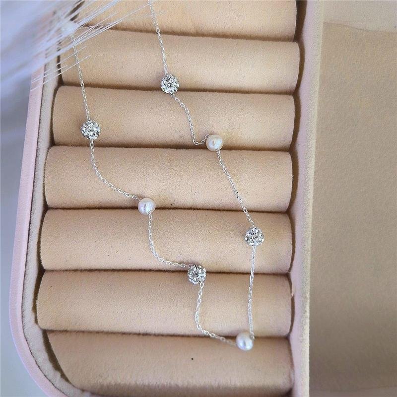 COLAR PRATA 925 GARGANTILHA PÉROLAS E BOLINHAS ZIRCONIAS