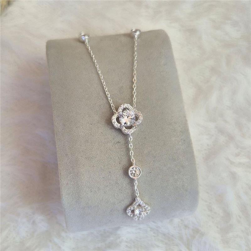 COLAR PRATA 925 GARGANTILHA TREVO PONTO LUZ ZIRCÔNIA