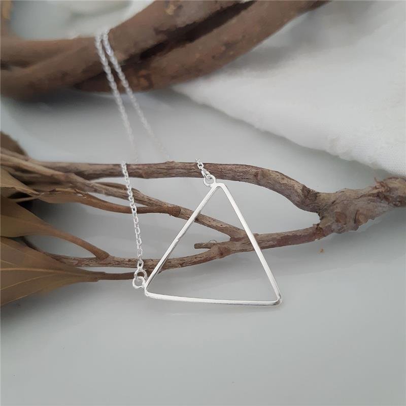 Colar Prata 925 legítima. Colar corrente comum com pingente geométrico de triângulo vazado. Fecho bóia.Medida