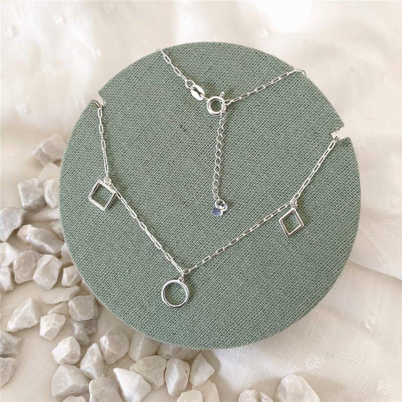 Corrente 925 legítima prata branca. Elos com 3 pingentes geométricos vazados: Triângulo, Quadrado e Círculo 40 cm + 3,3 cm extensor. Fecho boia.Medidas: