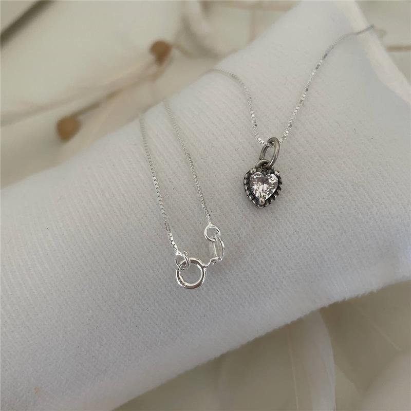 Colar Prata 925 legítima em bali. Ponto de luz com formato coração e bordar trabalhadas com bolinhas. Corrente veneziana.Medidas: