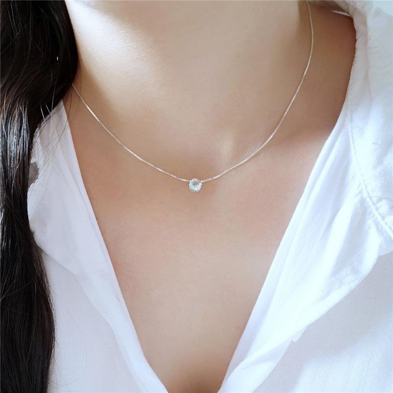 Colar Prata 925 legítima. Ponto de luz em formato redondo, realçado por uma cravação de caixa inglesa em pedra de zircônia, nas cores rosa, verde ou azul.Uma joia encantadora, perfeita para iluminar e complementar seu estilo com elegância e sofisticação.