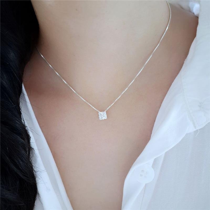 Colar Prata 925 legítima. Ponto de luz em formato quadrado, realçado por uma cravação de caixa inglesa em pedra de zircônia.Uma joia encantadora, perfeita para iluminar e complementar seu estilo com elegância e sofisticação.