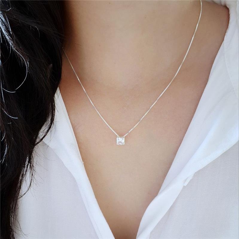 Colar Prata 925 legítima. Ponto de luz em formato quadrado, realçado por uma cravação de caixa inglesa em pedra de zircônia.Uma joia encantadora, perfeita para iluminar e complementar seu estilo com elegância e sofisticação.
