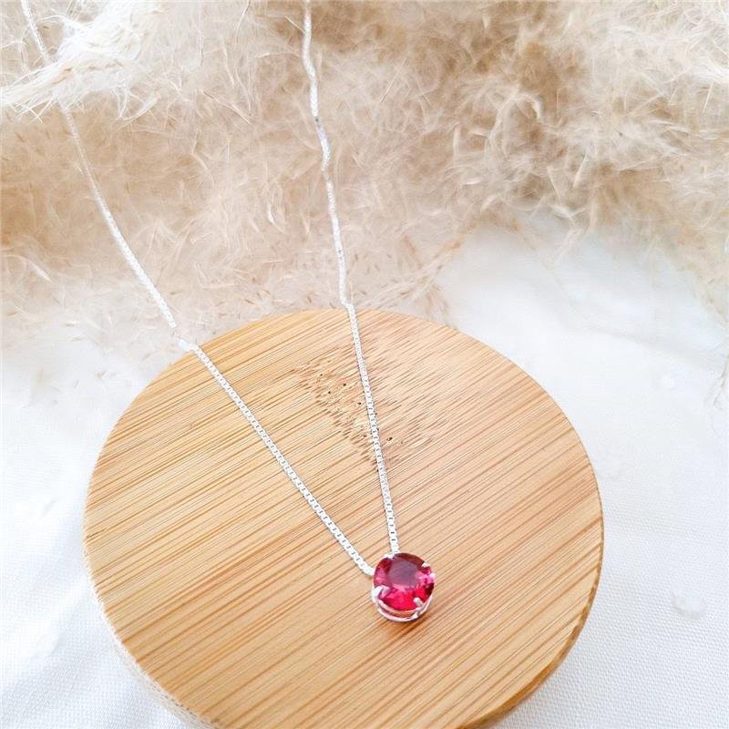 Colar Prata 925 legítima. Ponto de luz, realçado por uma cravação de caixa inglesa em pedra de zircônia, disponível em cores vermelha, rosa, azul e lilás. Uma joia encantadora, perfeita para iluminar e complementar seu estilo com elegância e sofisticação.Medidas