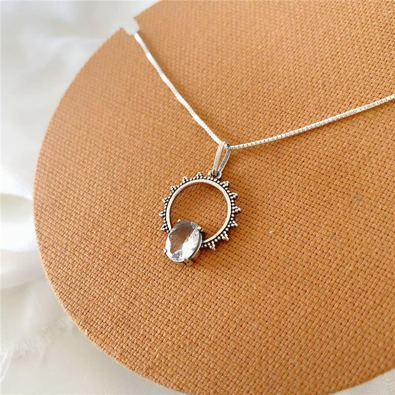 Colar Prata 925 Legitima em Bali. Corrente veneziana, pingente sol incompleto com pedra zircônia na parte inferior central, contorno trabalhado com bolinhas. Fecho boia.Medidas: