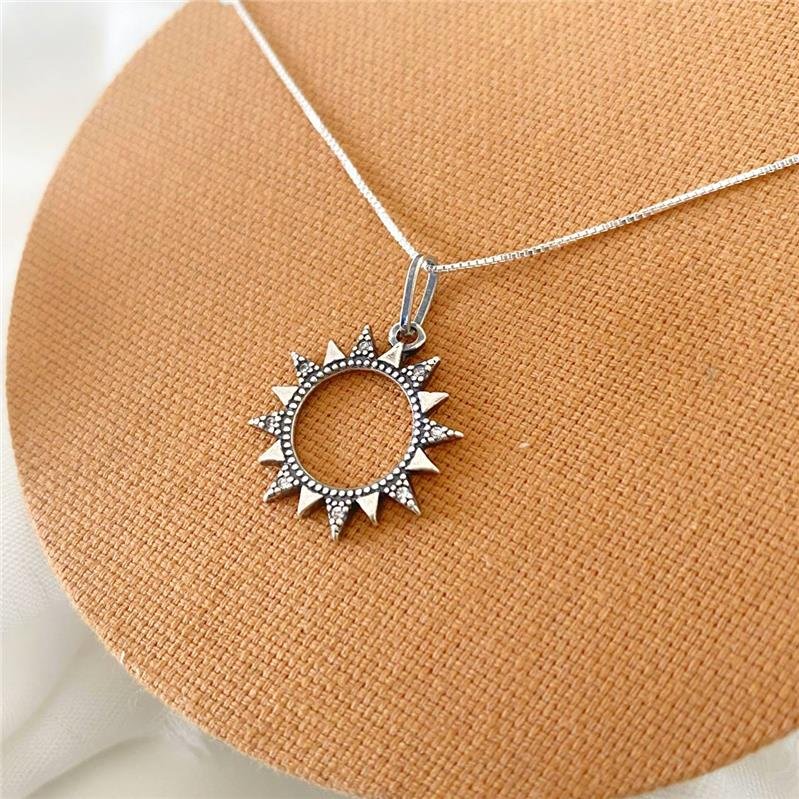 Colar Prata 925 Legitma em Bali. Corrente veneziana, pingente sol vazado com pontas irregulares, cravejadas com pedra zircônia de modo intercalado. Fecho boia.Medidas: