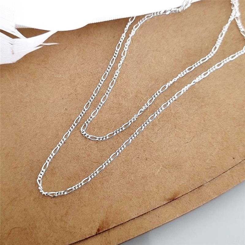 CORRENTE PRATA 925 MASCULINA ELOS FÍGARO 3X1 1MM