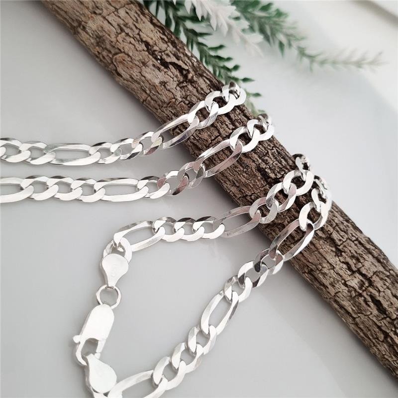 CORRENTE PRATA 925 MASCULINA ELOS FÍGARO 3X1 6MM