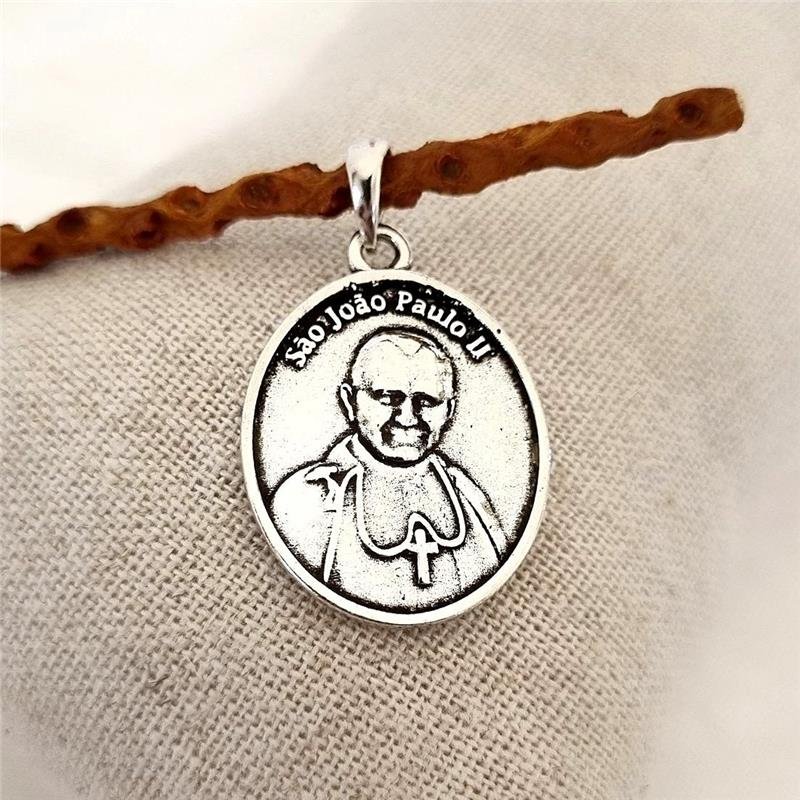 Medalha Prata 925 legítima em bali. Pingente religioso com uma impressionante imagem de São João Paulo II, riquíssima em detalhes. Na parte de trás, está representada a imagem da cruz que ele carregou durante seu papado, acompanhada de uma de suas célebres frases: "O amor me explicou tudo." Esta medalha é uma homenagem tocante à sua profunda espiritualidade, destinada a inspirar e fortalecer a fé daqueles que a utilizam.Medidas