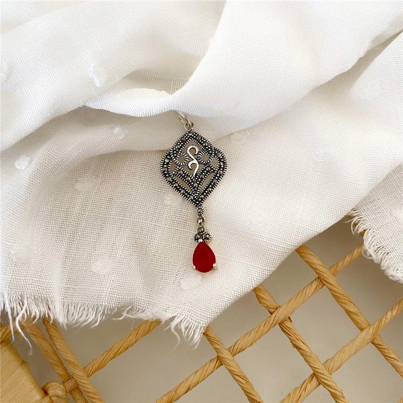 Pingente Prata 925 Legitima em Bali. Arabescos cravejados na pedra marcassita na parte inferior uma pedra natural em formato de gota .Medidas: