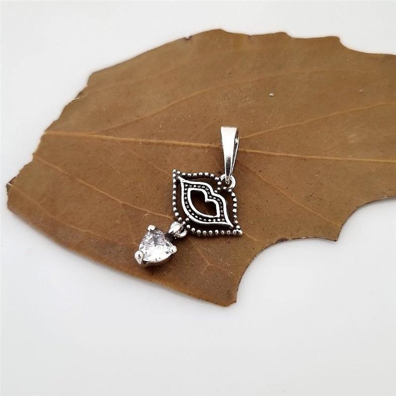 Pingente Prata 925 legítima em bali. Boquinha trabalhada com centro vazado e contorno linha pontilhada, pedra zircônia em formato de coração pendurada. Base lisa e fina.Medidas