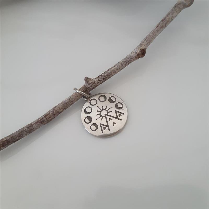 Pingente círculo com fases da lua, sol e montanha na prata bali. Confeccionado em Prata 925.Medidas: