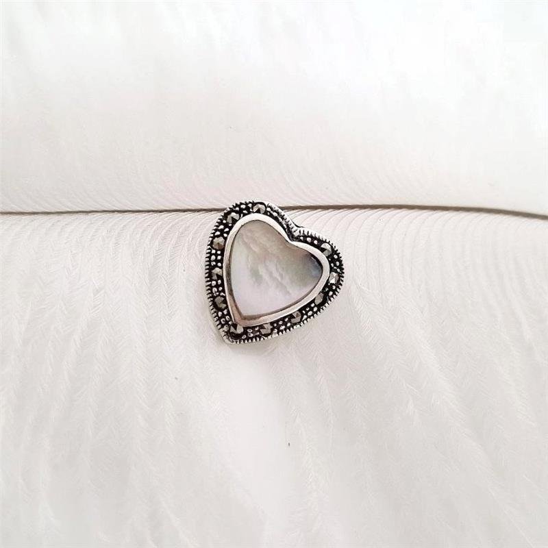 Pingente Prata 925 legítima em bali. Coração com contorno trabalhado e cravejado com pedra marcassita e centro com pedra natural madre pérola. Base atrás da peça em formato de meio coração.Medidas