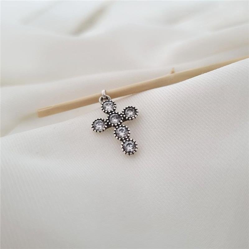 PINGENTE PRATA 925 CRUZ BOLINHAS COM PEDRA