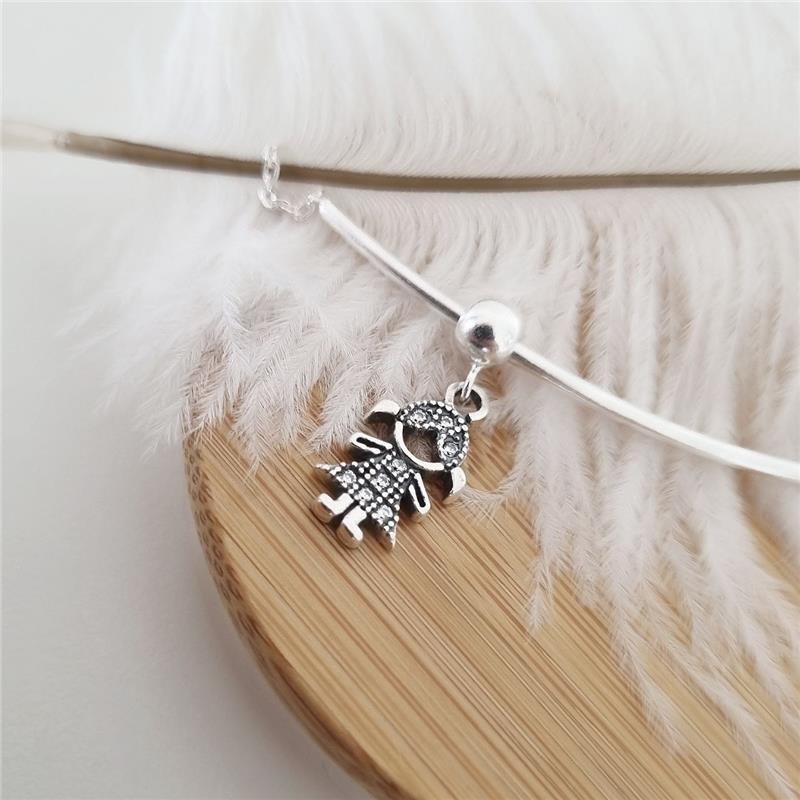 Pingente Prata 925 legítima em bali. Menina de vestido, cabela amarrado nas duas laterais e cravejado com pedra zircônia. Base de bolinha.Medidas