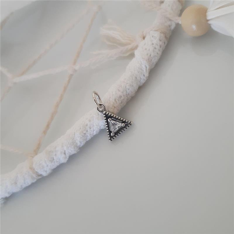 Pingente prata 925 legítima geométrico triângulo com pedra de zircônia na prata bali com bolinhas em volta.