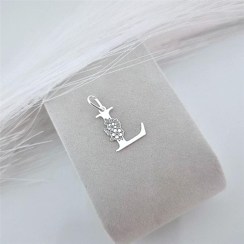 Pingente prata 925 legítima. Letras alfabeto em plaquinhas com desenhos florais.