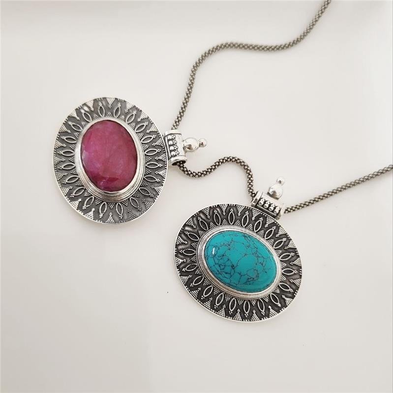 Pingente Prata 925 legítima em bali. Miolo oval em pedra natural nas variações de Rubi e Turquesa com laterais trabalhadas em pontilhados. Base cilíndrica com bolinhas em cima.Medidas
