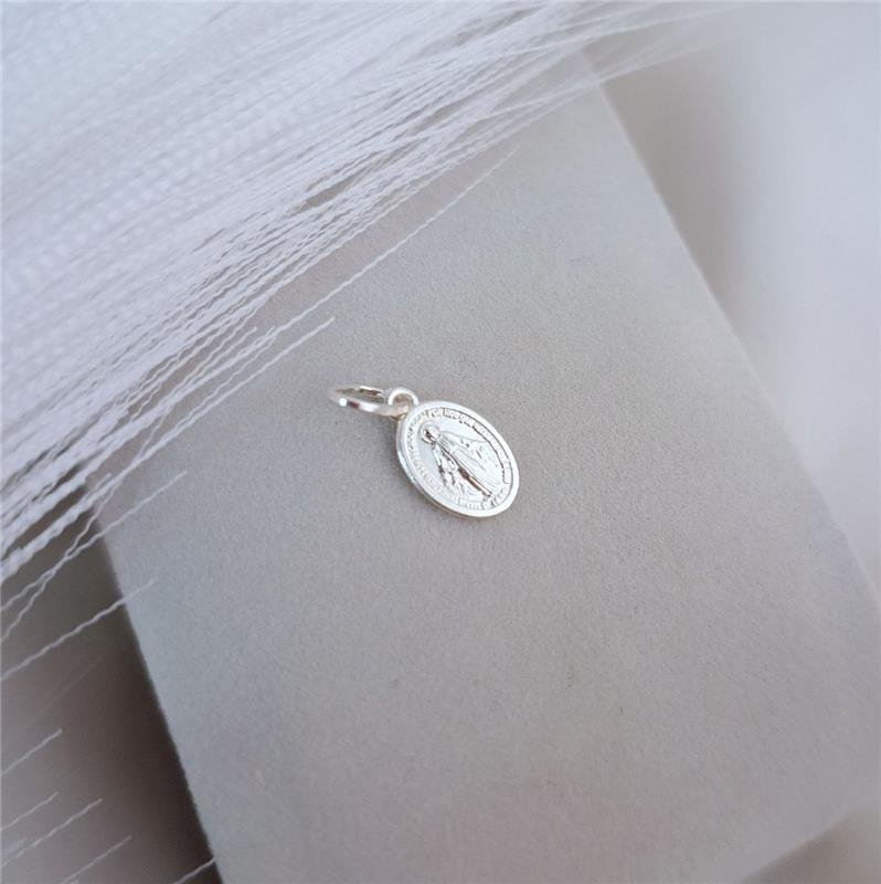 PINGENTE PRATA 925 MINI MEDALHA NOSSA SENHORA DAS GRAÇAS OVAL