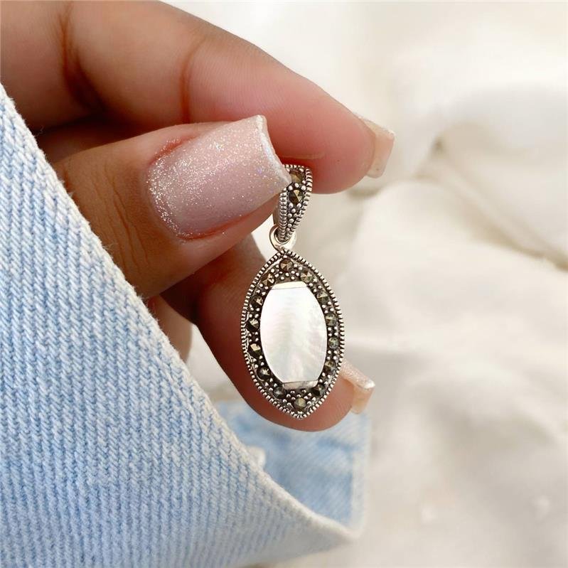Pingente Prata 925 Legitima em Bali. Base trabalhada em detalhes de listras e bolinhas com duas pedras marcassita. Pendurado olho em forma vertical em seu contorno trabalhado em detalhes de listras, em seguida cravejado com pedra marcassita e detalhes de bolinhas, no centro da peça uma pedra natural.Medidas: