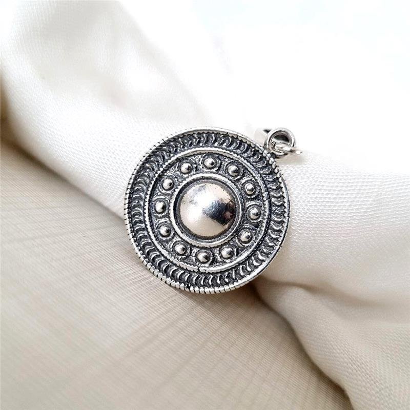 Pingente Prata 925 legítima em bali. Círculo com centro trabalhados com vários tamanhos de círculos e semi círculos. Base lisa e fina.Medidas