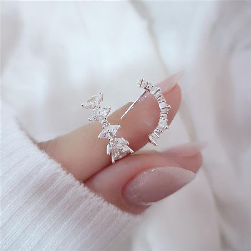 Prata 925 Legítima. Brinco arqueado com 5 zirconias losango grandes intercaladas com 4 ziconias menores redondas. Brinco com tarracha na parte superior.Medidas: