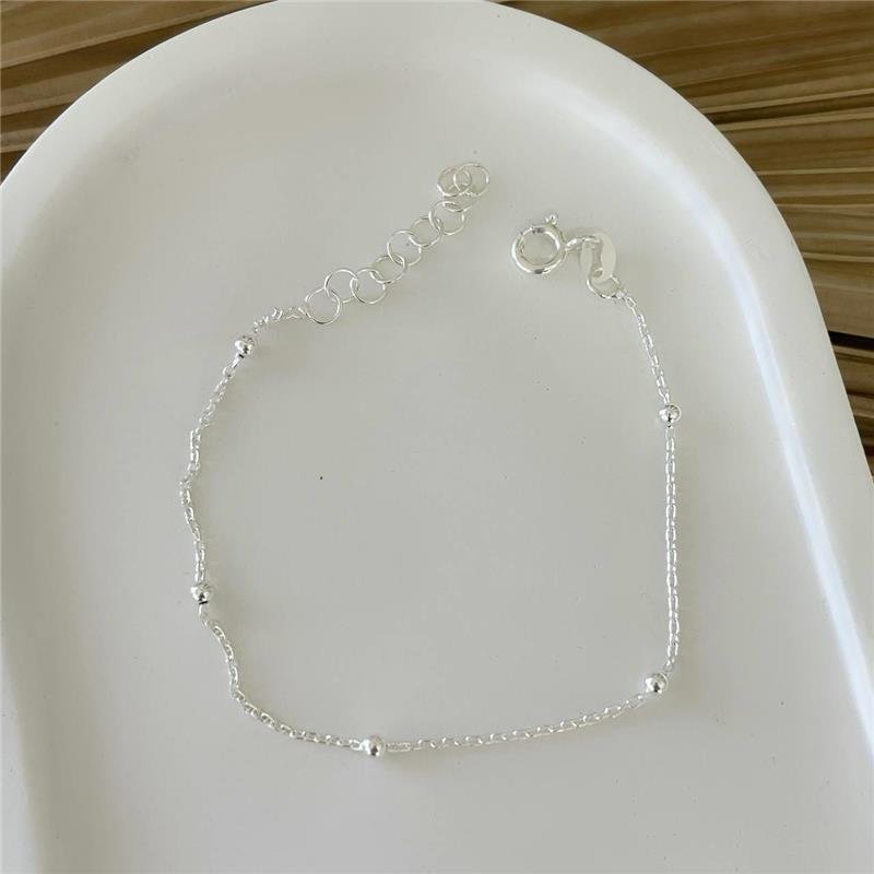 Pulseira em prata 925 com cinco bolinhas pequenas lisas intercaladas com a corrente.Medidas: