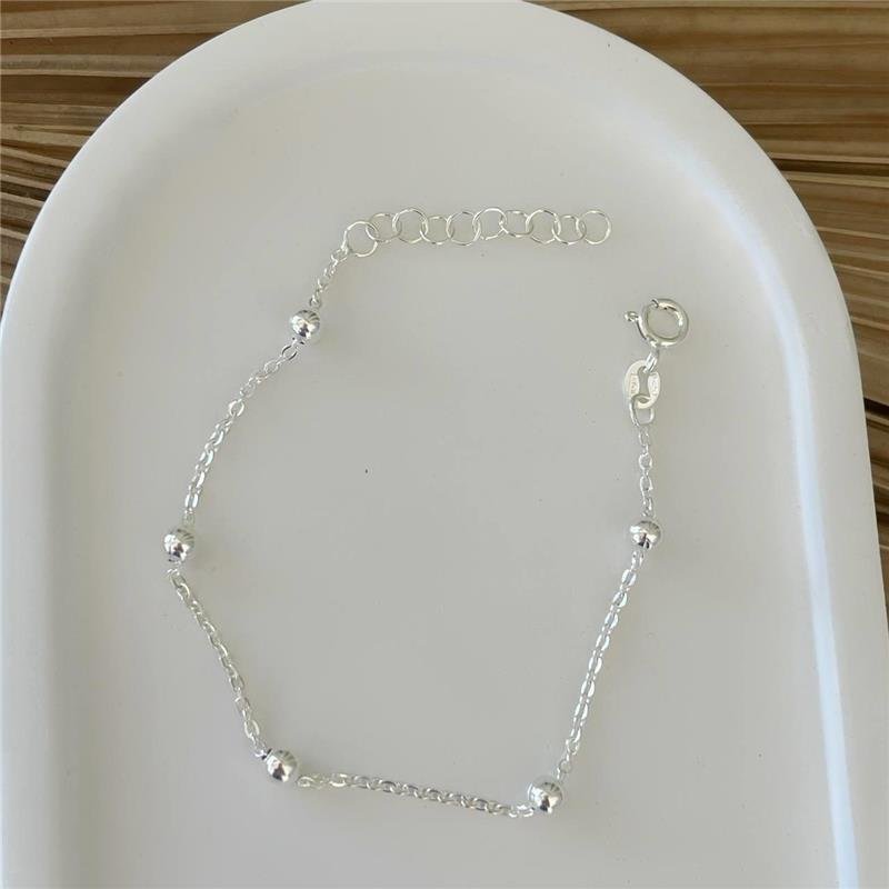 PULSEIRA PRATA 925 5 BOLINHAS MÉDIAS INTERCALADAS CORRENTE