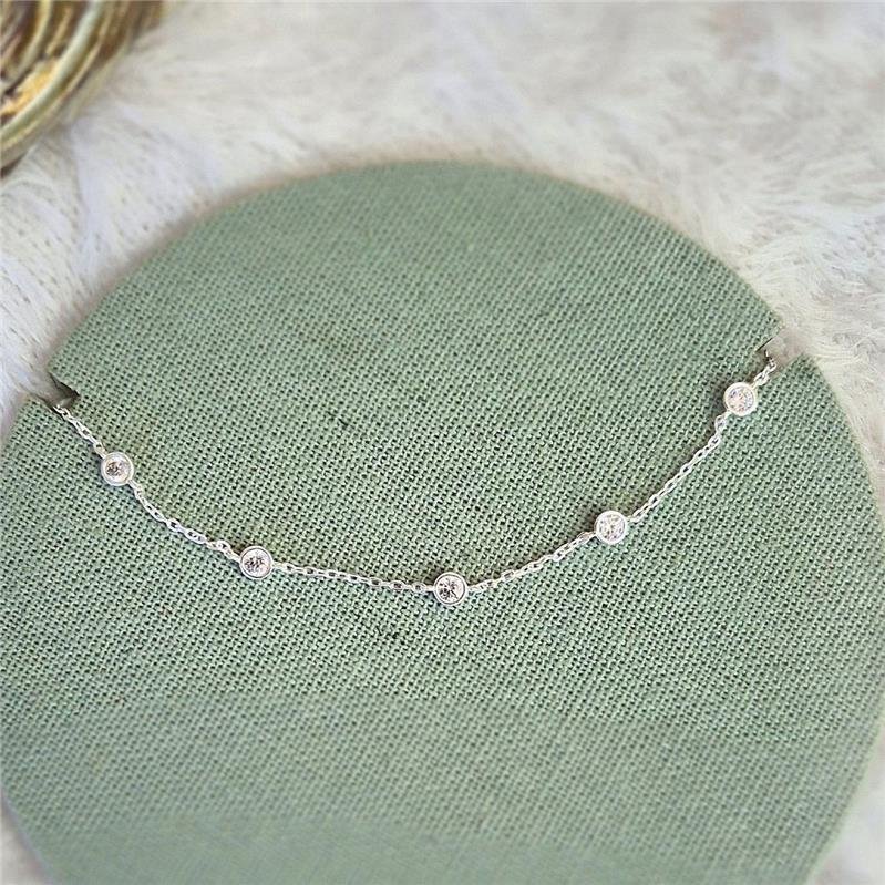 Pulseira Prata 925 5 Pontos Luz Zirconias. Corrente Elo português com extensor. Fecho Mosquete.Medidas: