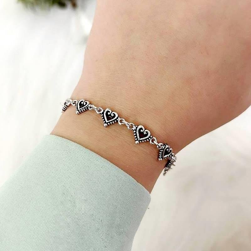 Pulseira Prata 925 legitima em bali. Corações moldados com centro escurecido.Medidas: