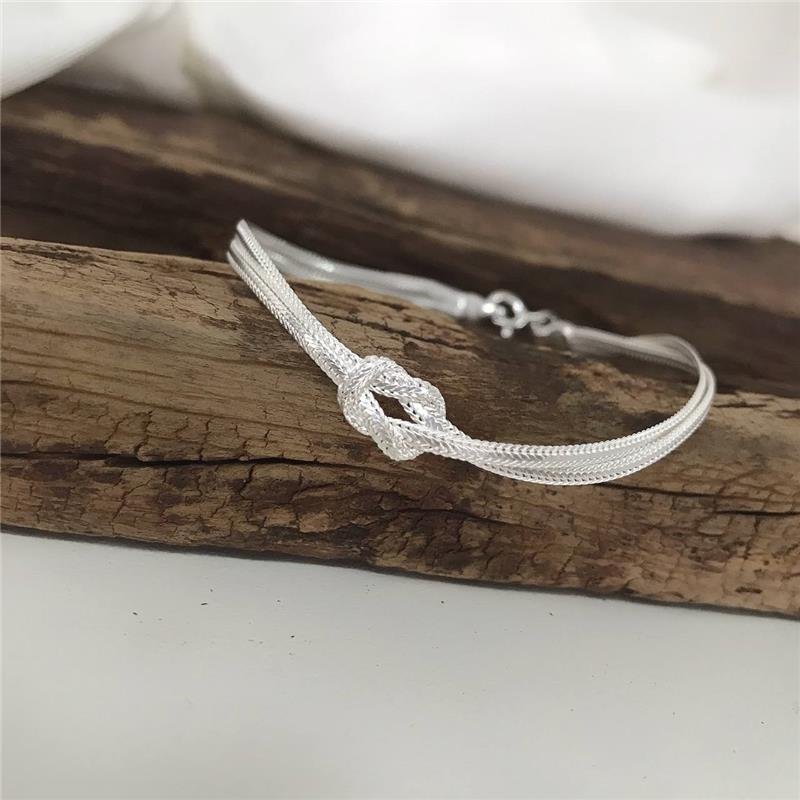 Pulseira Prata 925 legítima. Dois fios laminados com detalhes, com nó no centro da peças. Fecho boia.Medidas