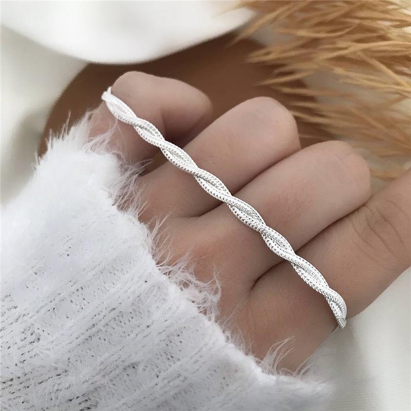 Pulseira Prata 925 legítima. Dois fios laminados e trabalhados com detalhes torcidos por todo comprimento da pulseira. Fecho boia.Medidas