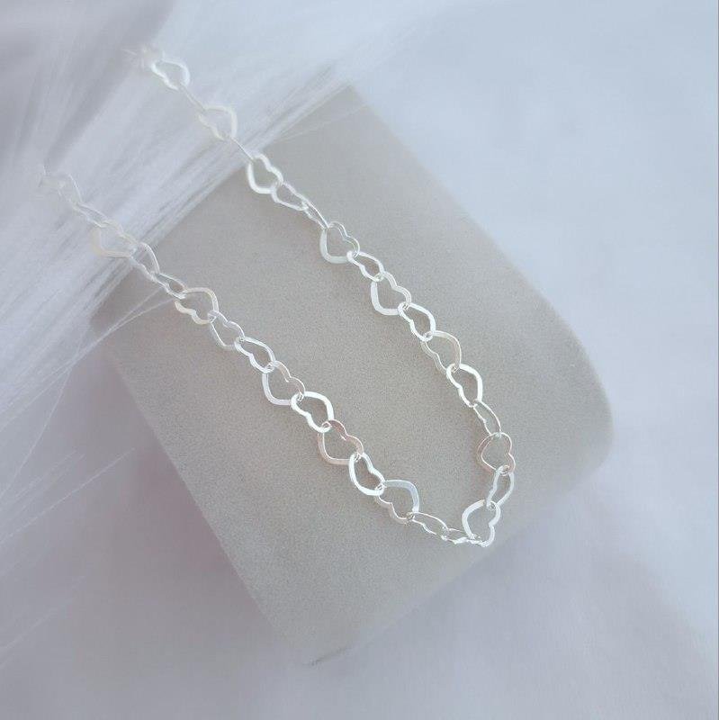 Pulseira prata 925 legítima. Adorne seu pulso com a delicadeza romântica desta pulseira de prata 925, ornamentado com elos de corações vazados. Cada elo é uma expressão de amor e leveza, capturando a beleza da prata esterlina em seu estado mais puro.Medidas: