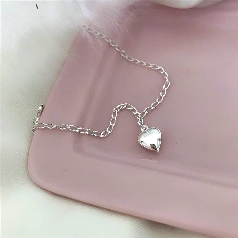 Pulseira Prata 925 legítima. Modelo infantil com elos fígaro e pongente de coração abaulado. Fecho boia.Medidas